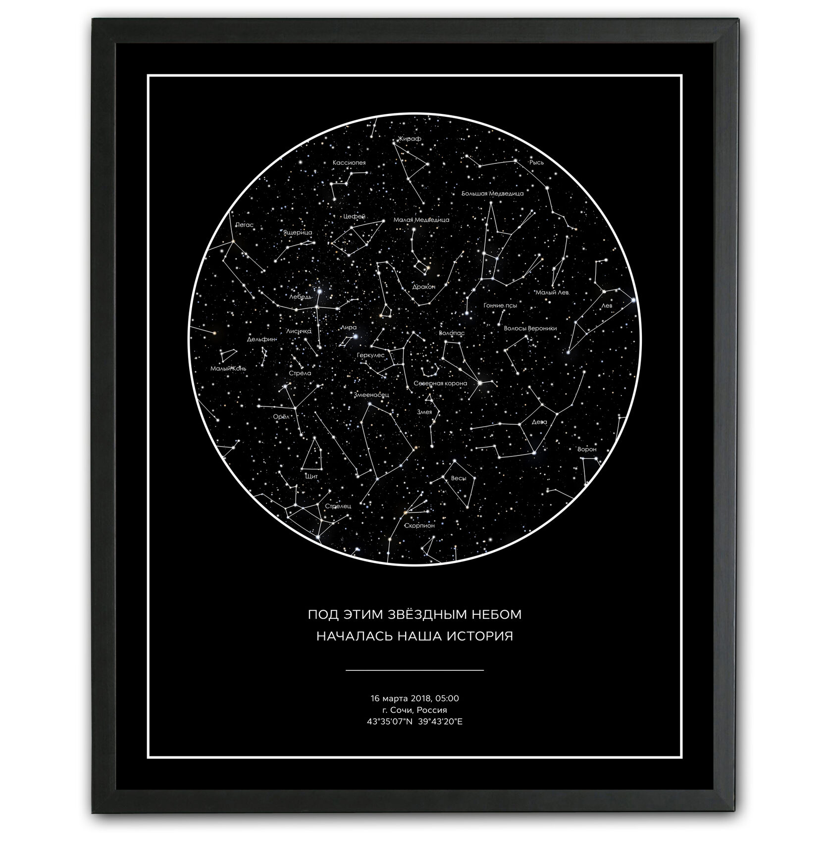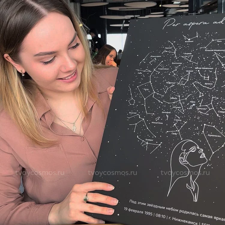 Мы создаем карты на основе визуализации астрономических данных из каталогов NASA через программное обеспечение. Исходя из указанного места, даты и времени, карта будет отражать звёзды и созвездия так, как это было или будет на небе в особенный день.Lorem ipsum dolor sit amet, consectetur adipiscing elit. Ut elit tellus, luctus nec ullamcorper mattis, pulvinar dapibus leo.
